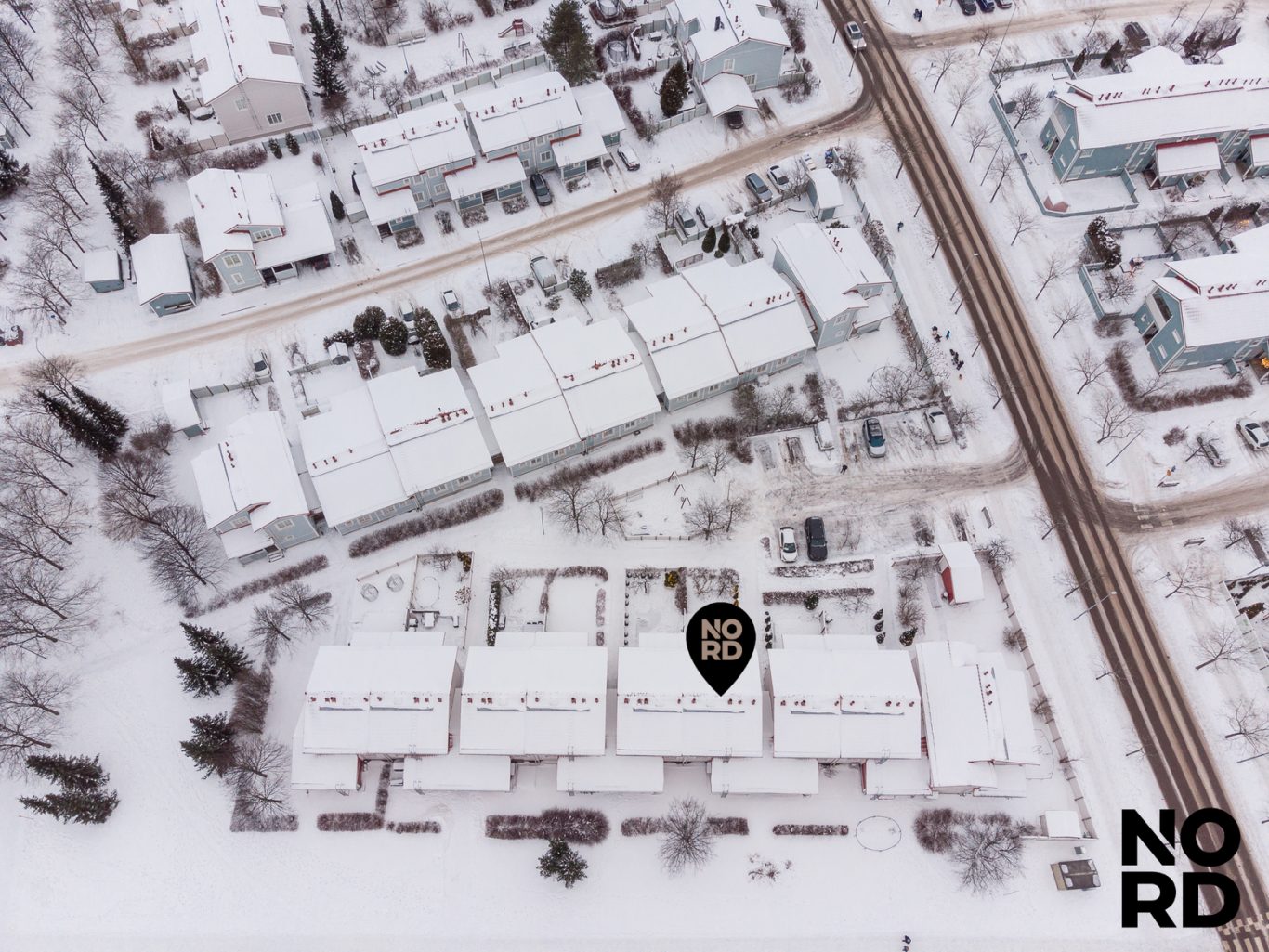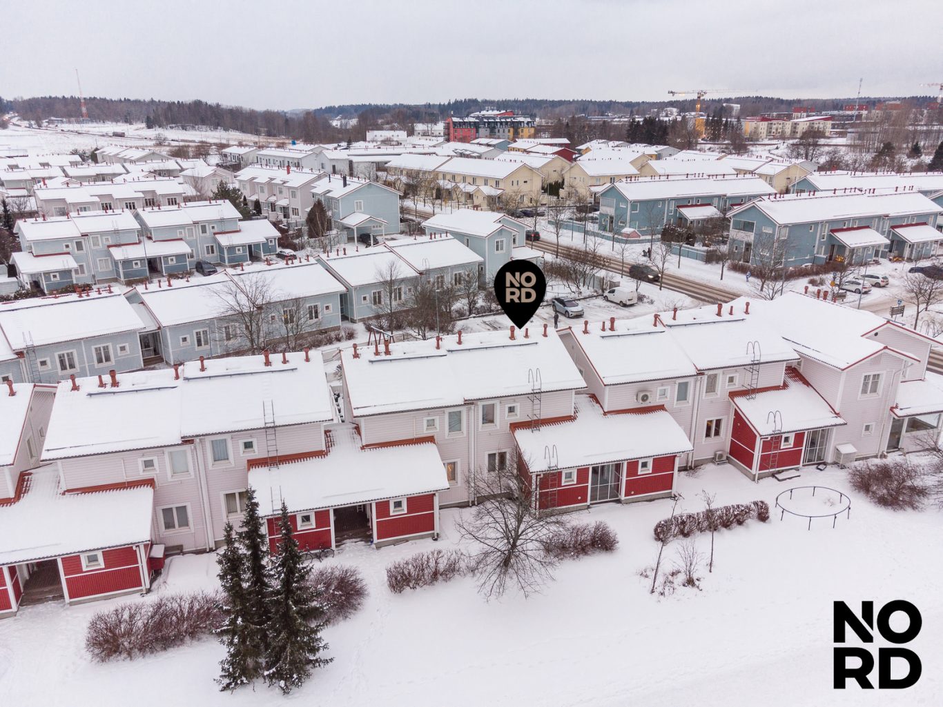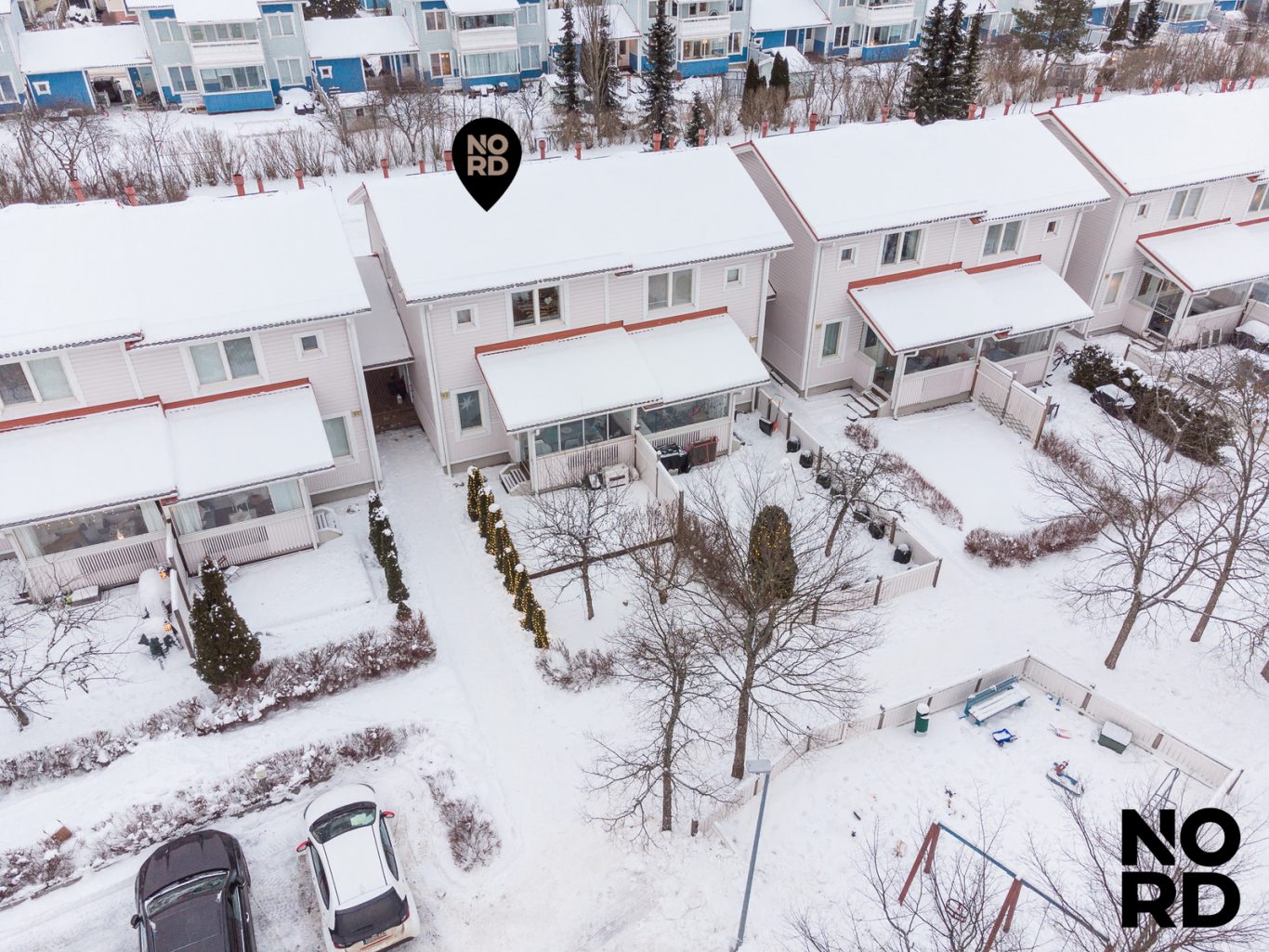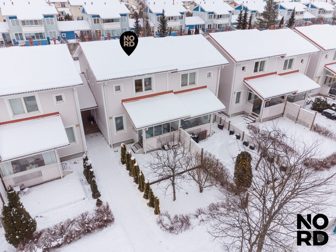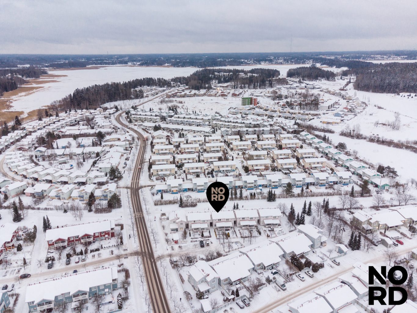Kodissa on hyvin säilytystilaa, sisäänkäynnin yhteydessä on oma ulkovarasto ja kaksi sähköistettyä autopaikkaakin sijaitsevat kätevästi lähellä kotiovea. Hyvin hoidettu maalämpöyhtiö sijaitsee omalla tontilaan kätevästi kylän alkupäässä, lähellä palveluja ja yhteyksiä. Kodilla on oiva mikrosijainti rauhallisesti korttelin keskellä niin, ettei ympärillä ole autoliikennettä, pihan näkymänä on viihtyisä sisäpiha leikkipaikkoineen ja takana kulkeva kävelytie tuo avaruutta ympärille. Lyhyt kävelymatka koululle kulkee turvallisesti ylittämättä yhtään autotietä. Tämän rivin suosio on siis helppo ymmärtää!