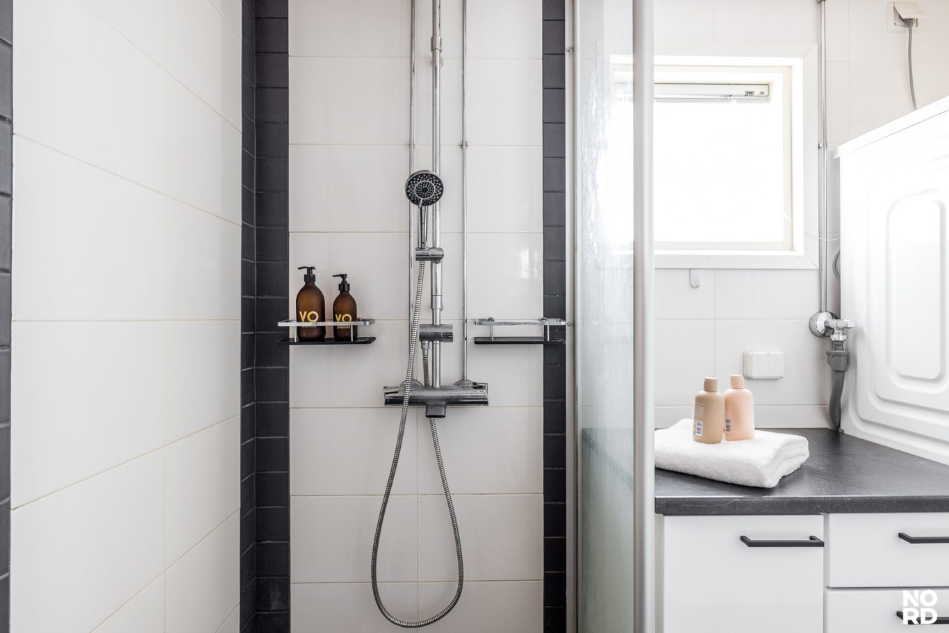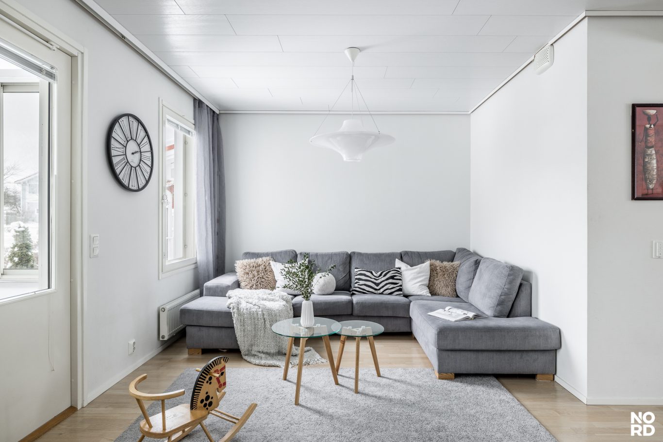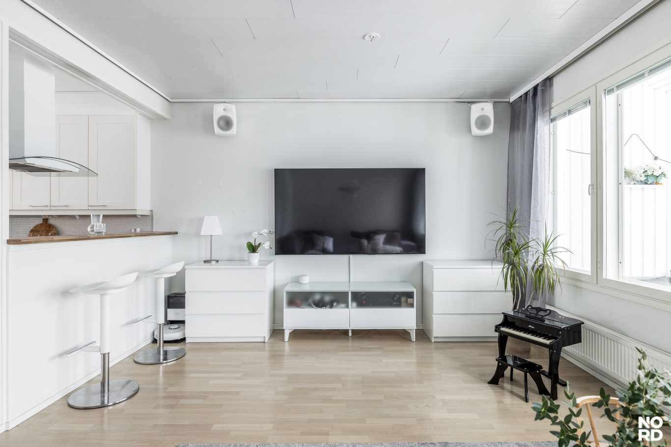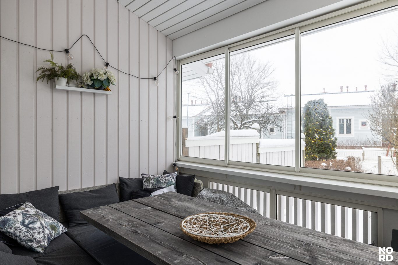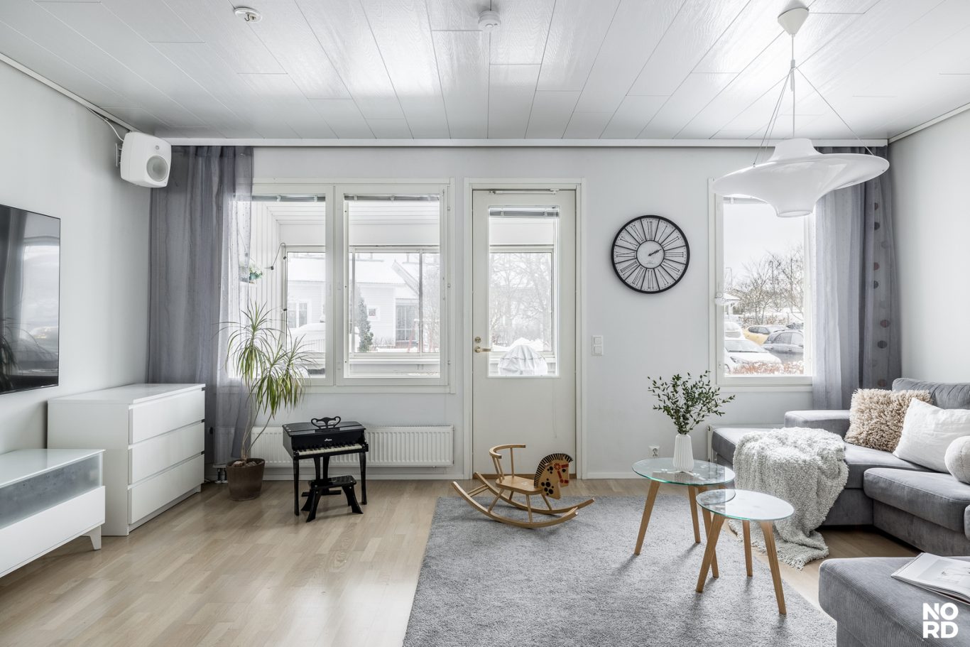 Kodissa on hyvin säilytystilaa, sisäänkäynnin yhteydessä on oma ulkovarasto ja kaksi sähköistettyä autopaikkaakin sijaitsevat kätevästi lähellä kotiovea. Hyvin hoidettu maalämpöyhtiö sijaitsee omalla tontilaan kätevästi kylän alkupäässä, lähellä palveluja ja yhteyksiä. Kodilla on oiva mikrosijainti rauhallisesti korttelin keskellä niin, ettei ympärillä ole autoliikennettä, pihan näkymänä on viihtyisä sisäpiha leikkipaikkoineen ja takana kulkeva kävelytie tuo avaruutta ympärille. Lyhyt kävelymatka koululle kulkee turvallisesti ylittämättä yhtään autotietä. Tämän rivin suosio on siis helppo ymmärtää!