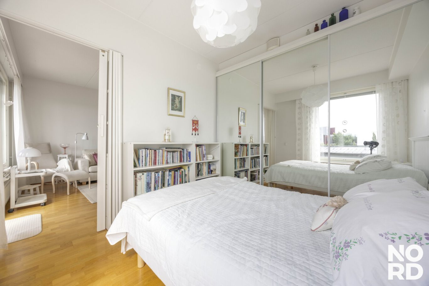 | Tilojen kuvaus | Makuuhuoneen ja olohuoneen välissä paljeovi |