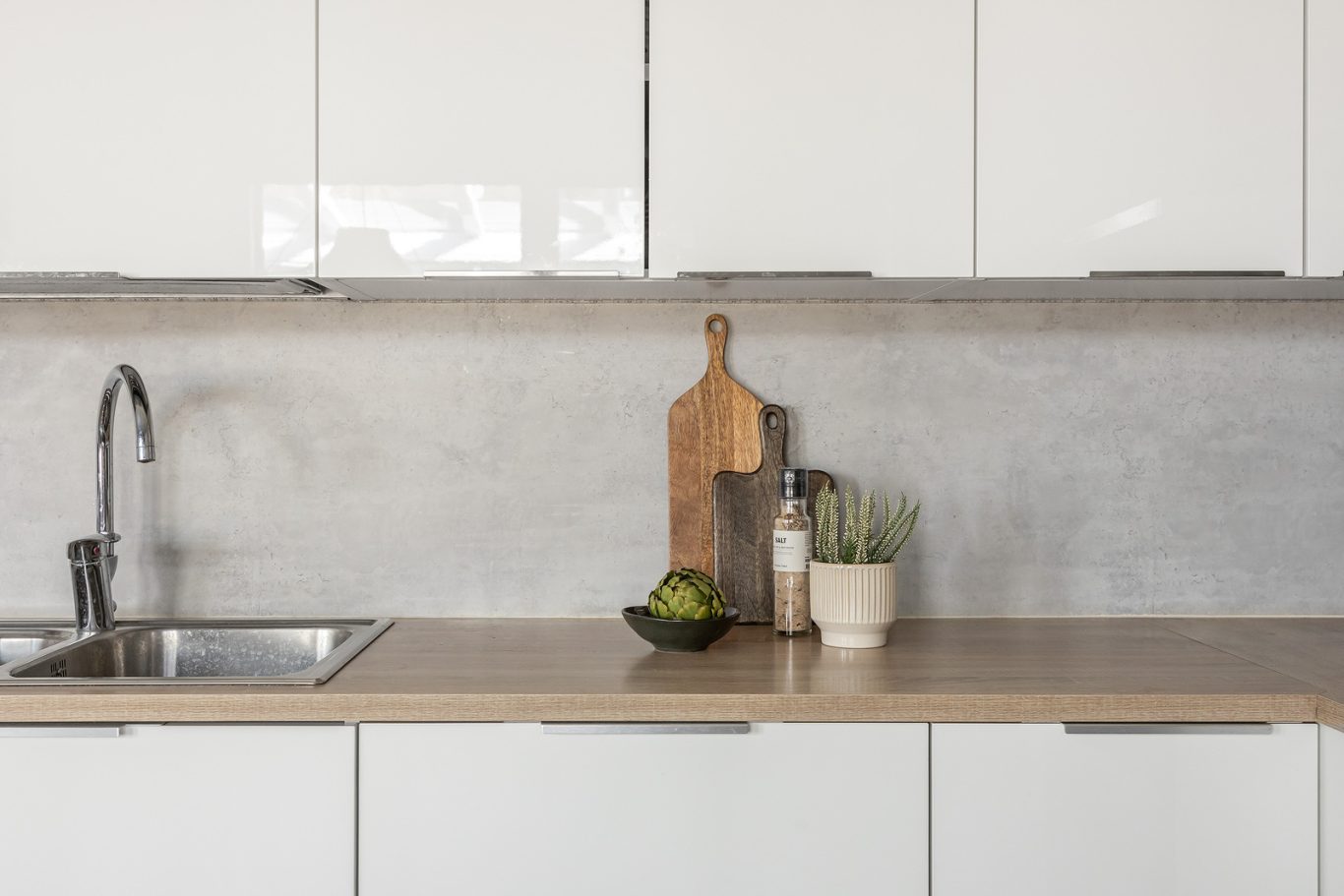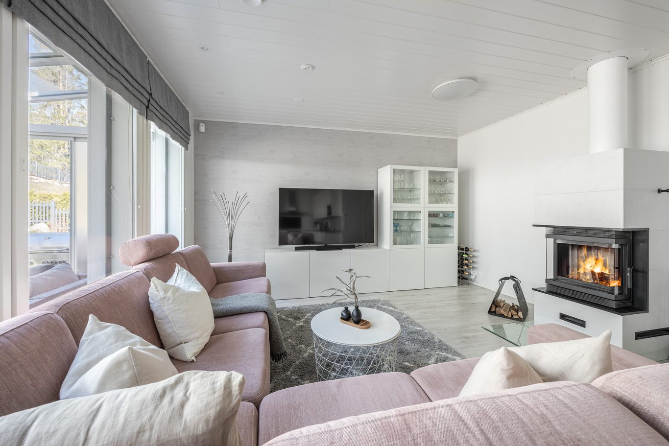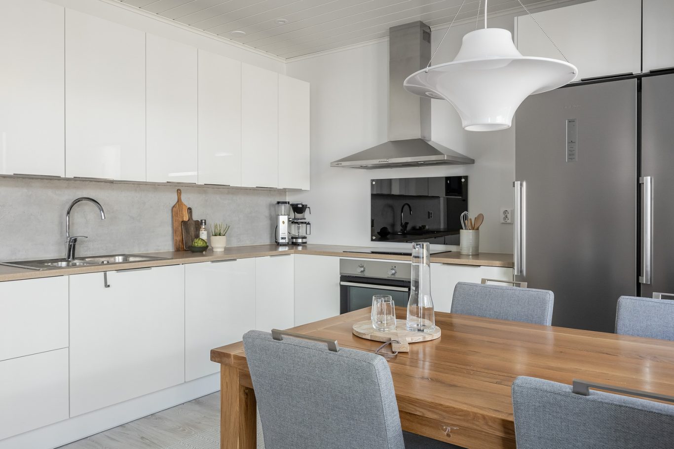 Valoisa asunto, tyylikäs vaalea Puustellin avokeittiö, runsaasti lasku- ja säilytystilaa, laadukkaat kodinkoneet. Ruokailutila avokeittiön ja olohuoneen yhteydessä. Olohuoneessa takka ja olohuoneesta käynti suurelle lasitetulle terassille ja kauniille pihalle.