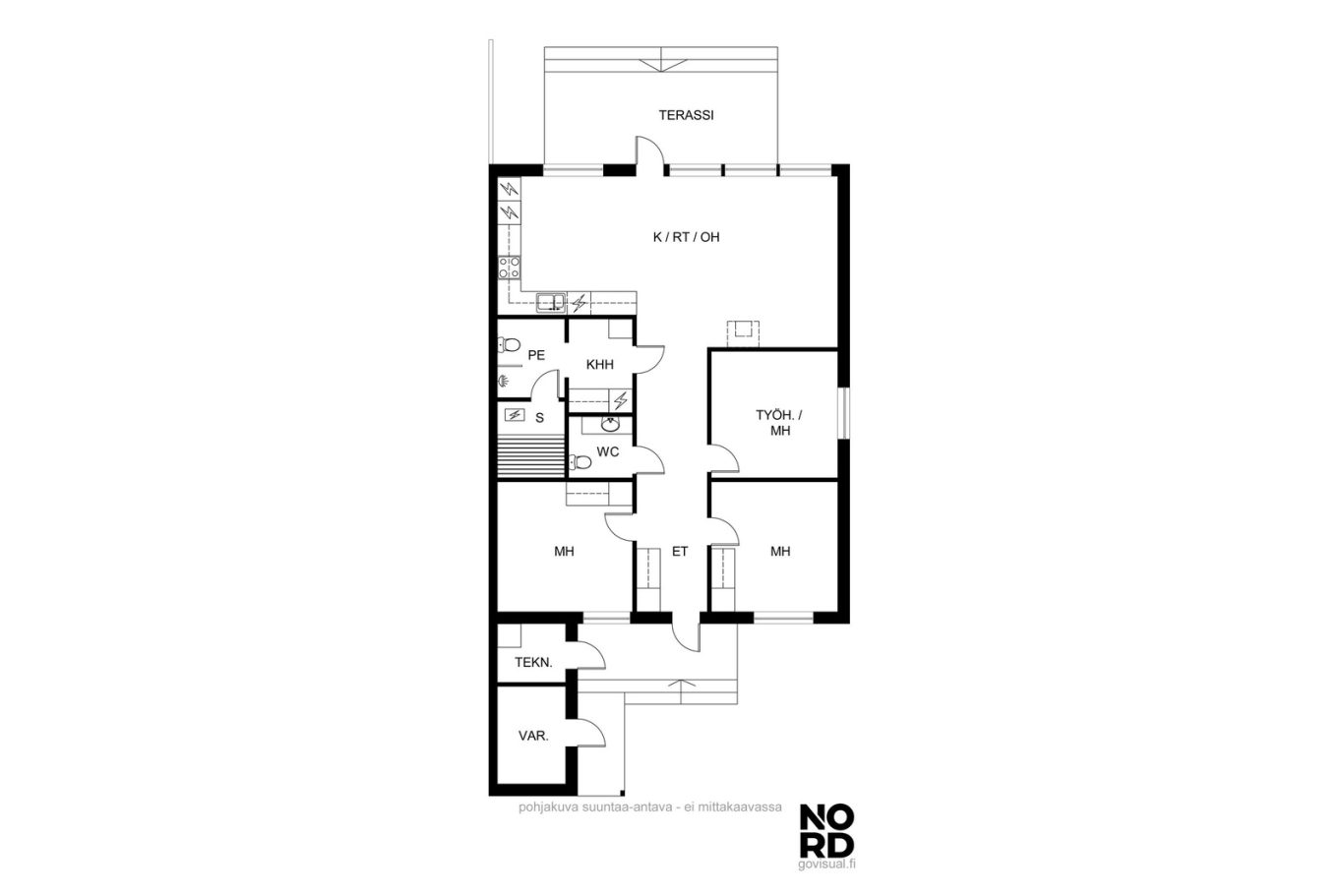 Olohuone/rt/avokeittiö+3MH+kh/wc+khh+s+wc+varasto+suuri las.terassi+oma piha-alue.