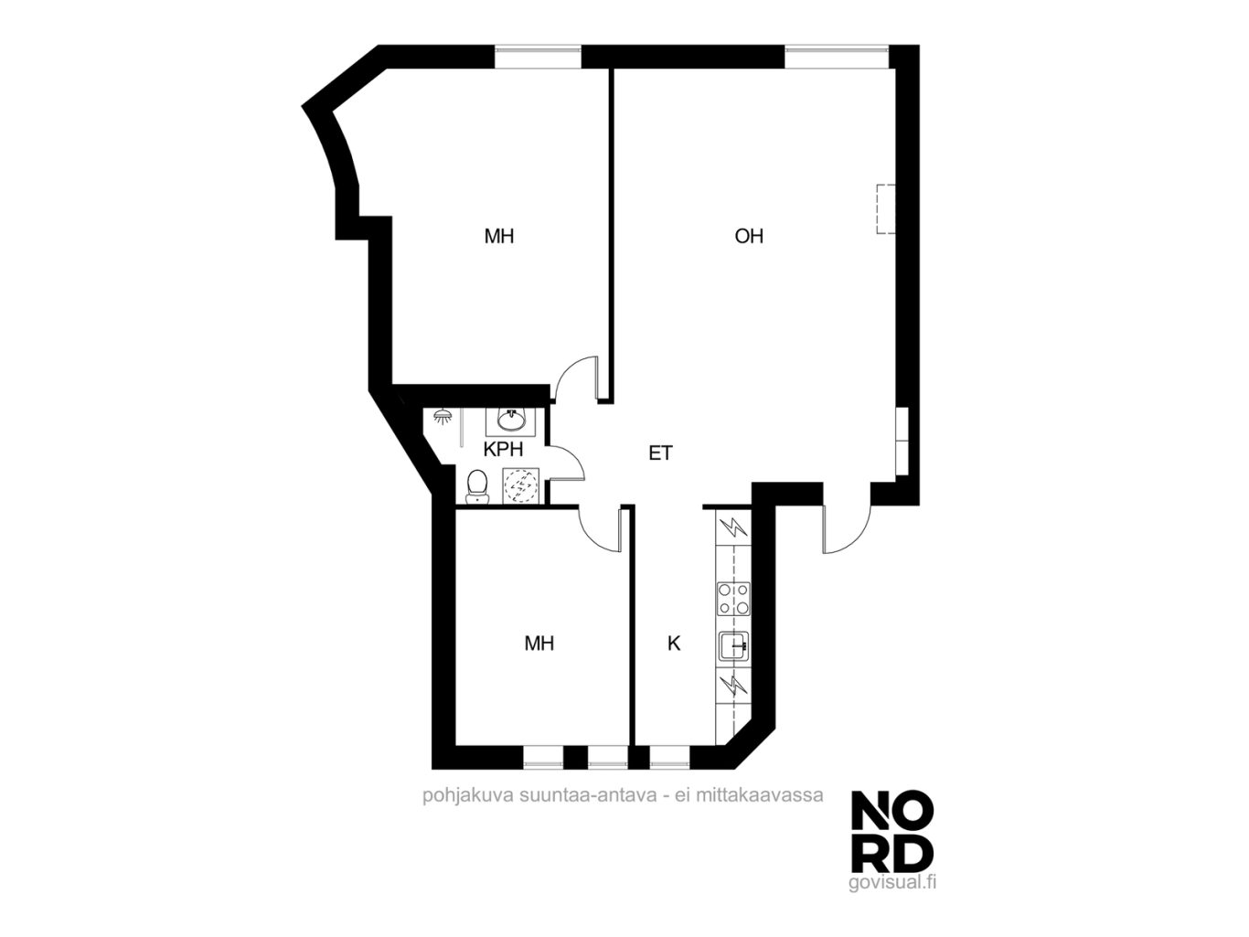 | Huoneistoselitelmä | 3h+keittiö+kph (yhtiöjärj. muk. 2h+k+kph) |