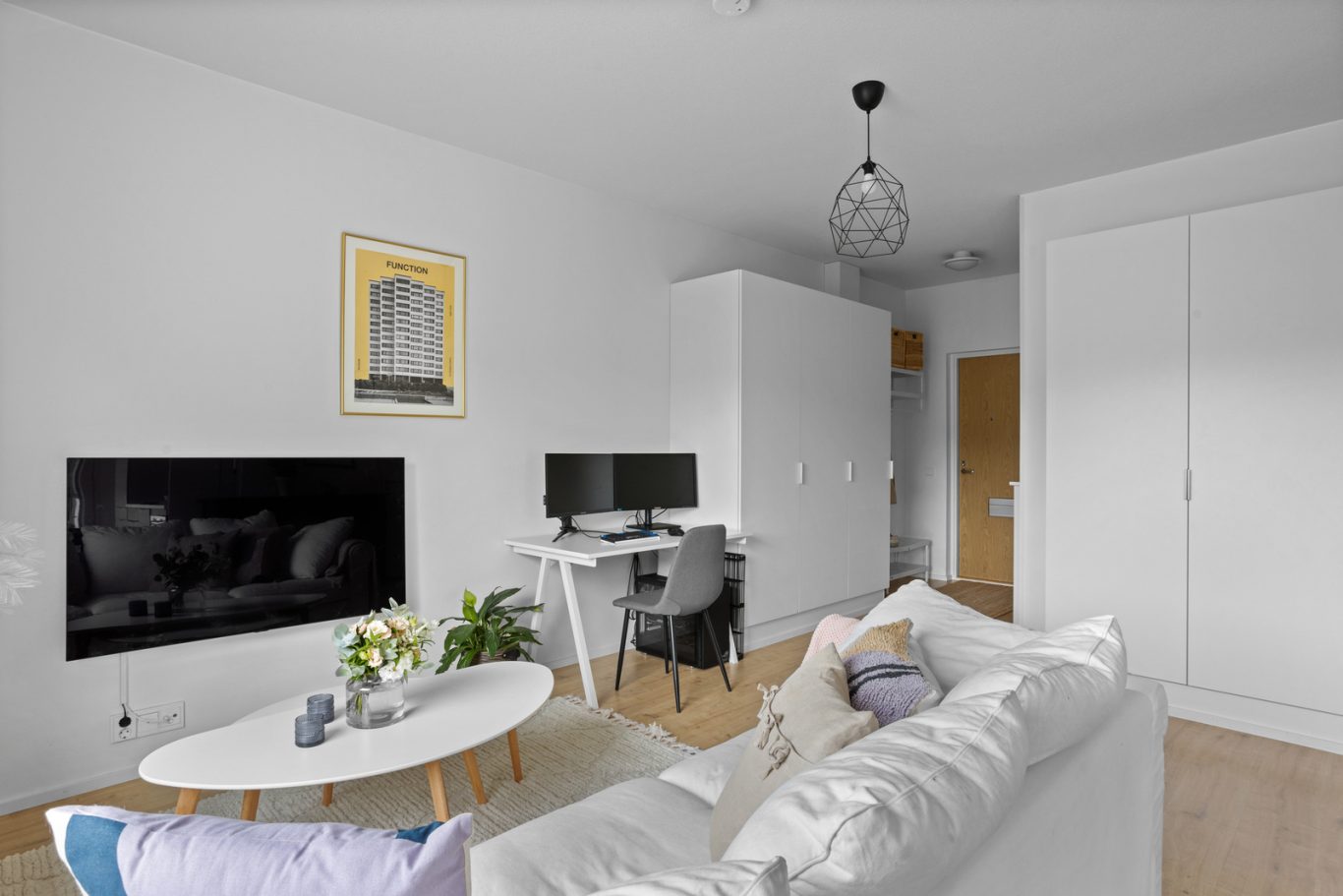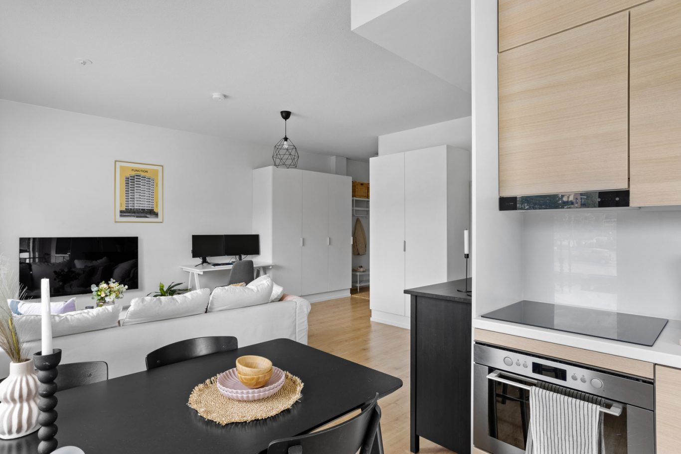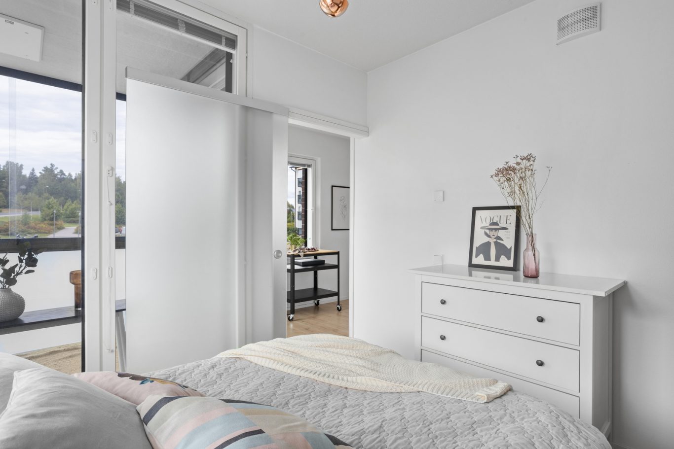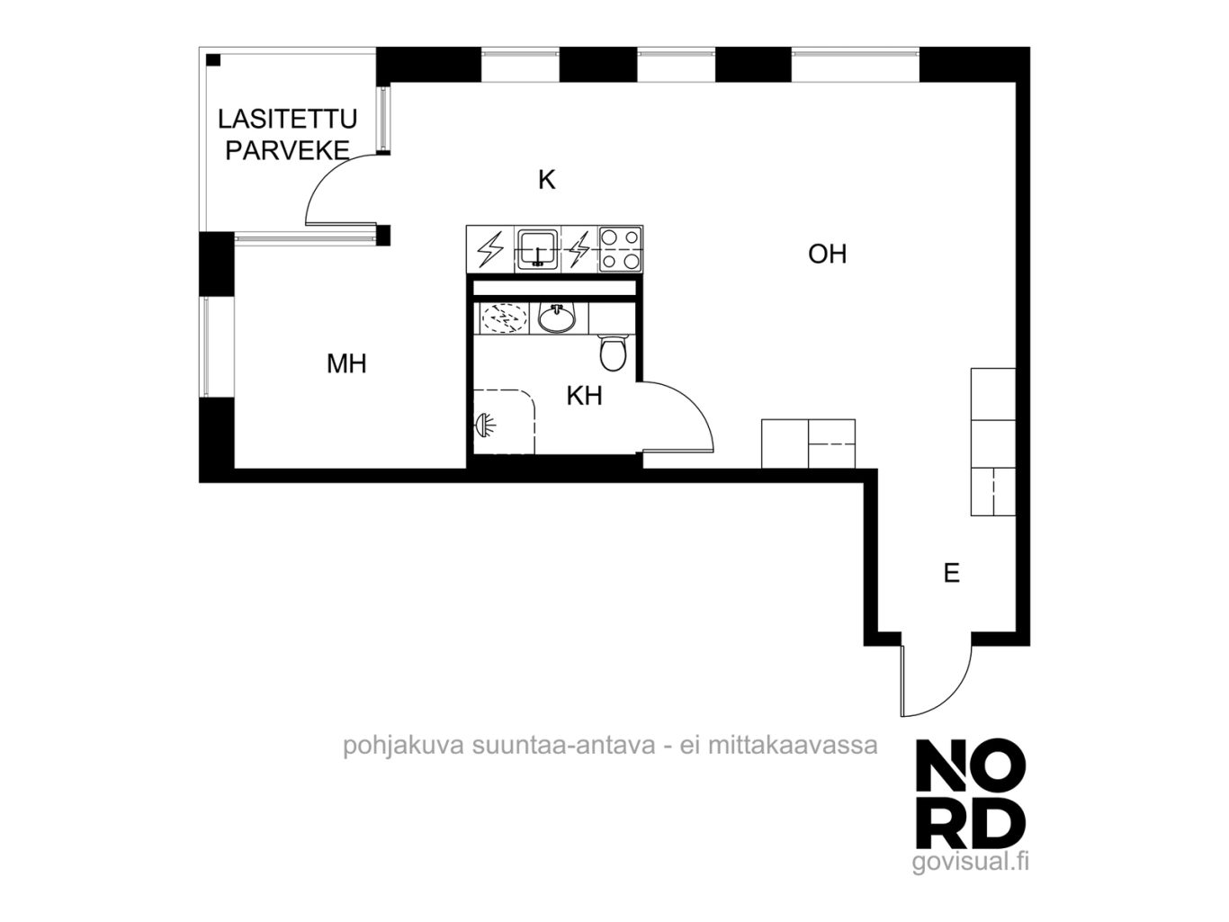 Valoisa olohuone, joka on moneen tapaan sisustettavissa. Makuuhuone, jonne mahtuu hyvin parisänky tai vaikkapa erillinen työpiste. Moderni kylpyhuone, jonne mahtuu hyvin myös pesukone. Kompakti tilava kaksio, jossa hyvä pohjaratkaisu.