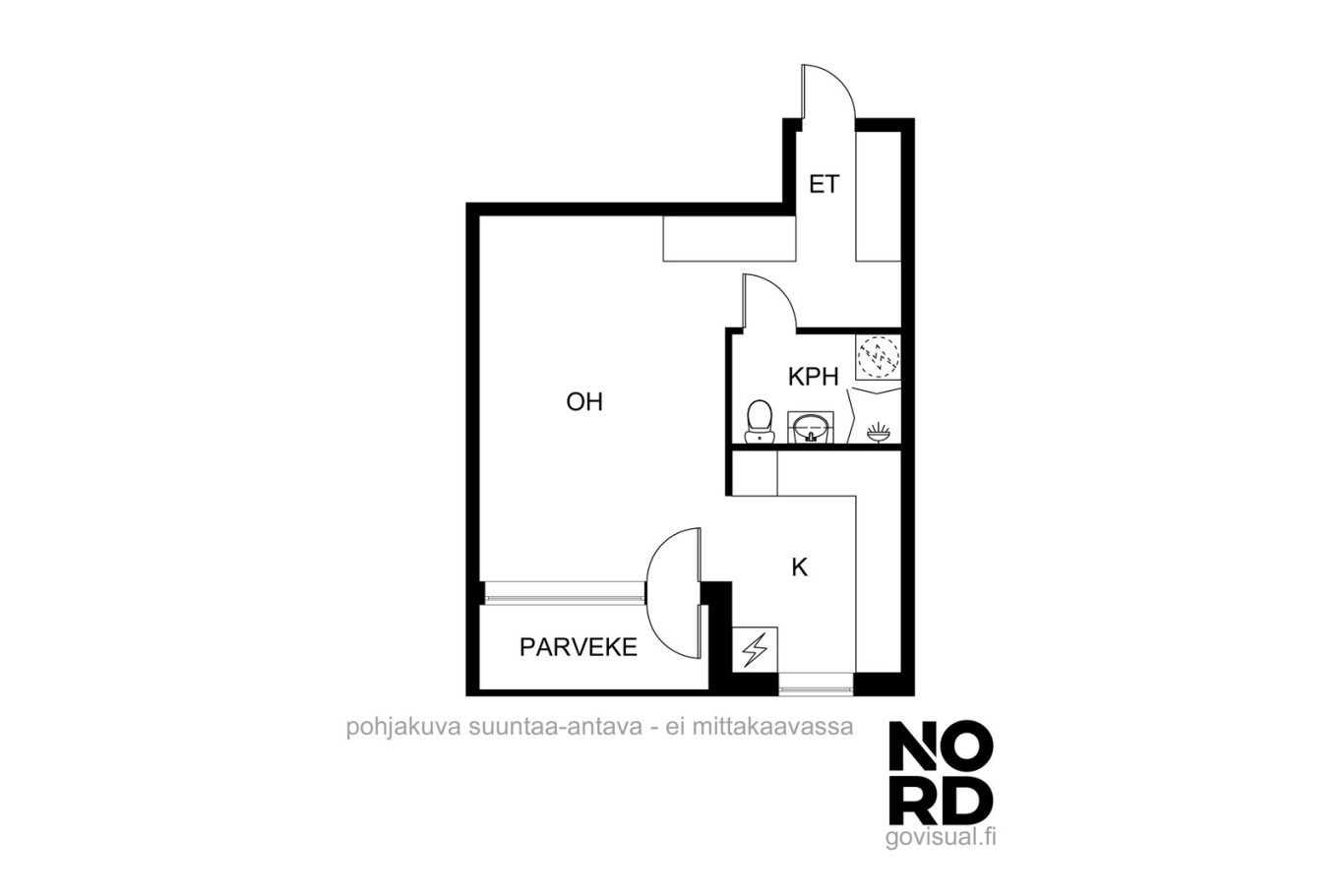 | Huoneistoselitelmä | 1h,kk,kph,lasitettu parveke (yhtiöjärj 1h+pk) |