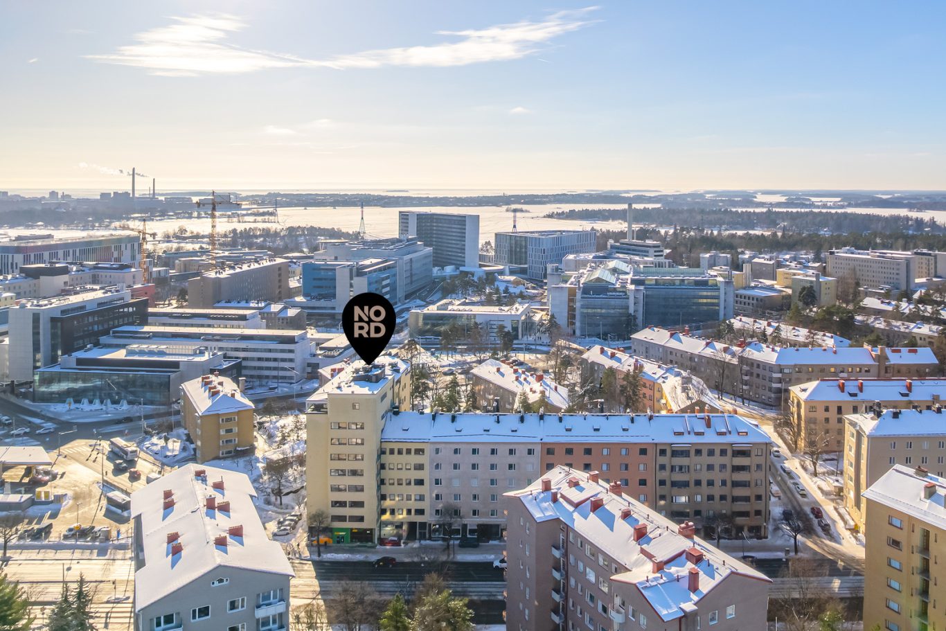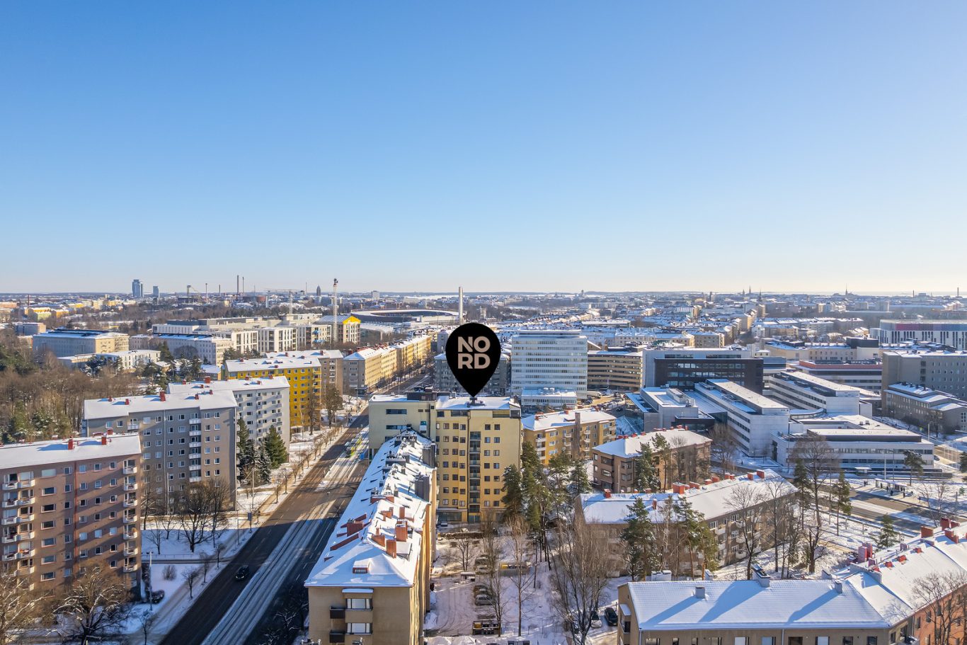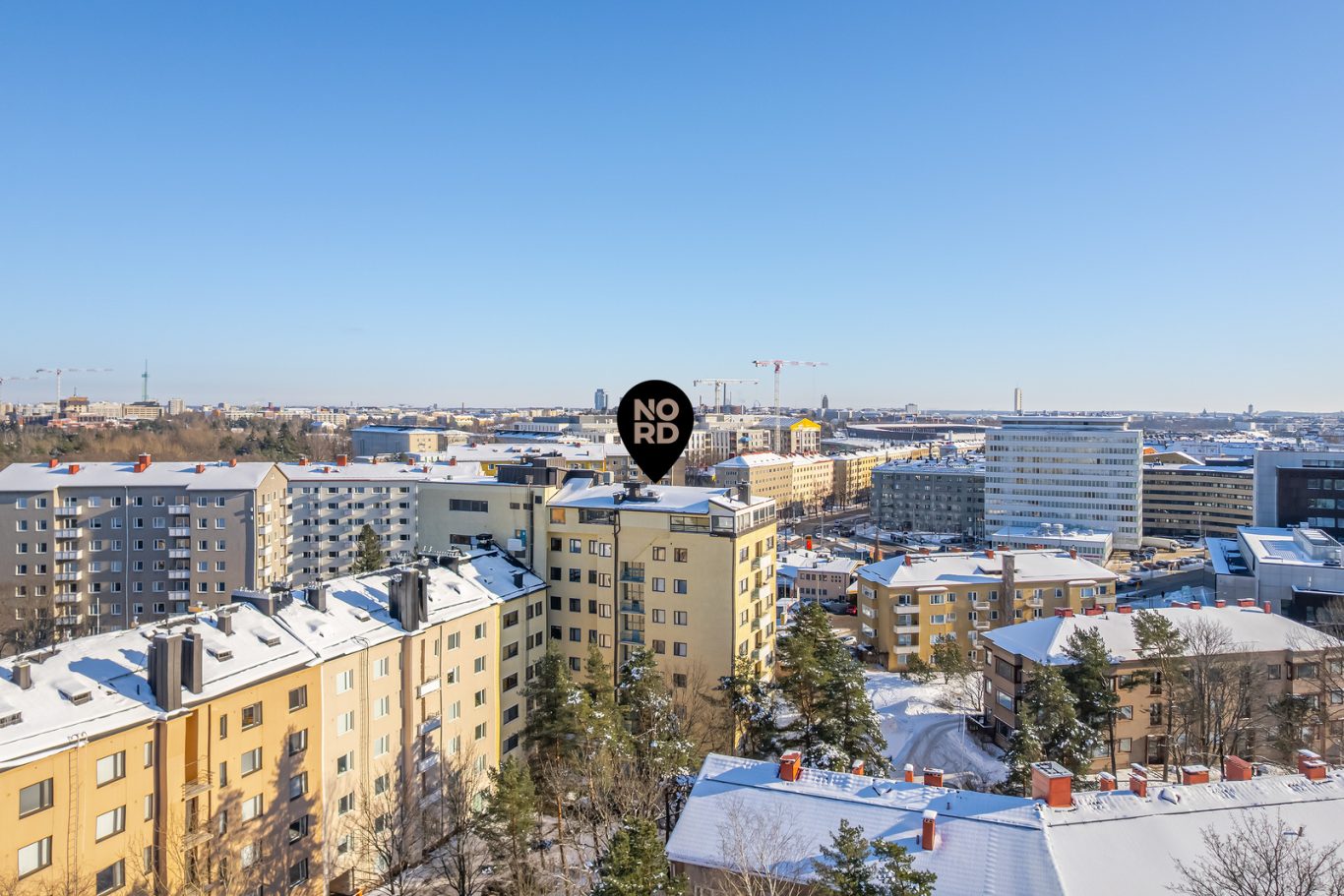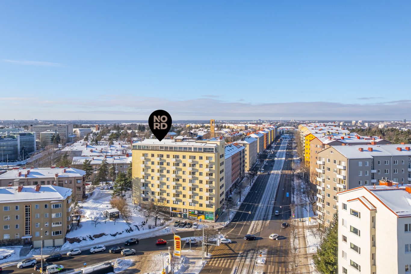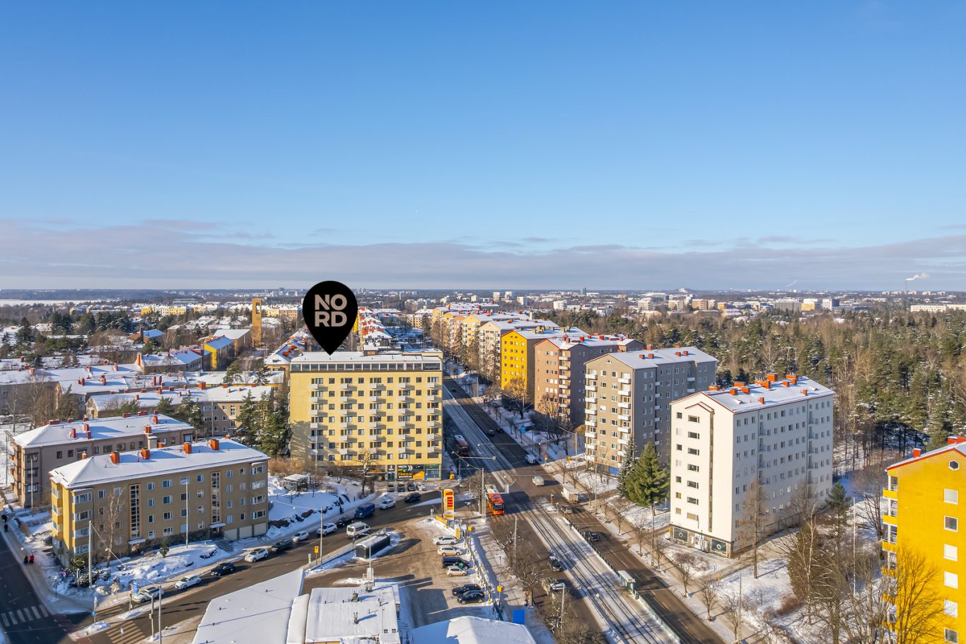 Täällä asuessasi pääset tottumaan arjen helppouteen! Erinomainen ravintolatarjonta ja palvelut aivan vieressä. Keskuspuiston ulkoilumaastot ja merenranta lähellä. Erinomaiset kulkuyhteydet ratikalla ja busseilla heti kotiovelta, Helsingn ydinkeskustaan sujuva matka. Kaikki tämä ja hyvin hoidettu taloyhtiö, jossa asumiseen ja talouteen vaikuttava suuri linjasaneeraus hoidettu tällä vuosikymmenellä!