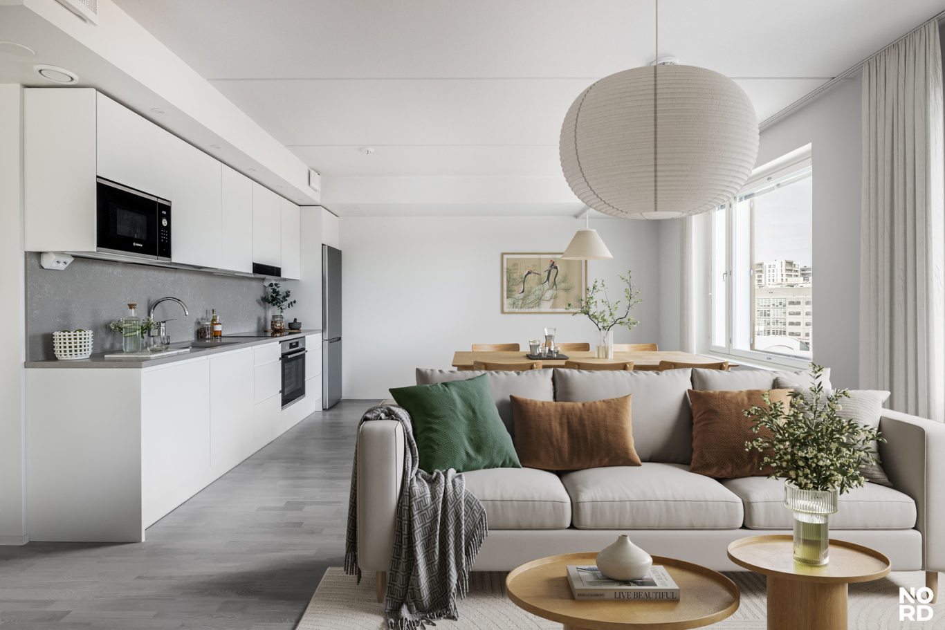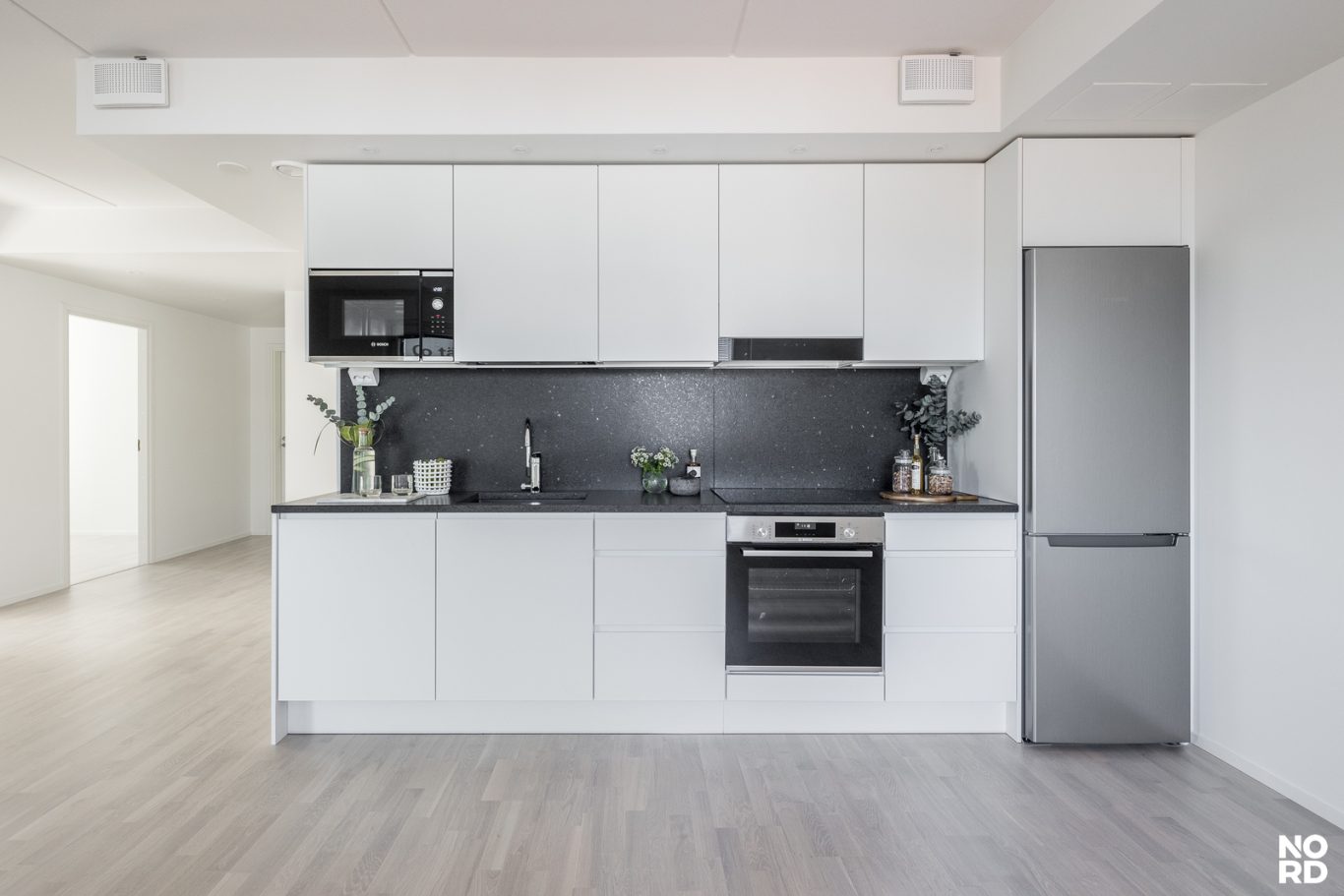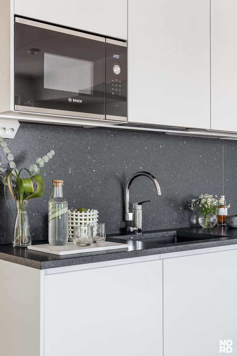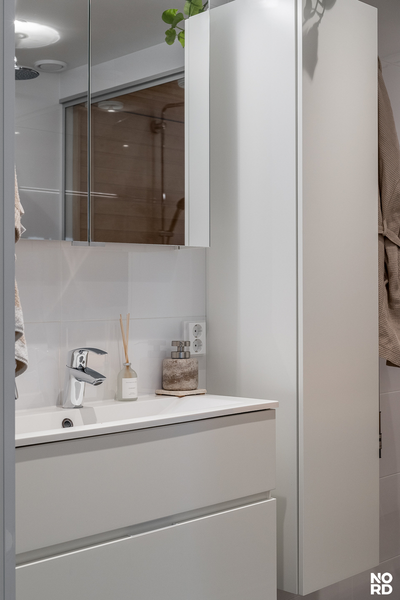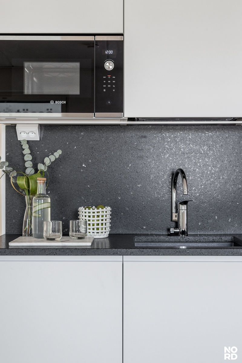 Ylellistä tunnelmaa tähän kulmahuoneistoon tuovat suuret ikkunat, laadukkaat parkettilattiat ja upea kylpyhuone omalla saunalla. Näyttävä Puustellin keittiö kvartsitasoilla ja Boschin kodinkoneilla tuo arkeen luksusta. Tilavasta ja viihtyisästä olohuoneen ja avokeittiön yhdistelmästä on käynti mukavan kokoiselle lasitetulle parvekkeelle josta aukeaa avarat näkymät. Asunnossa on reilunkokoinen päämakuuhuone ja pienempi makuuhuone, joka soveltuu hyvin työ- tai lastenhuoneeksi. Molemmista makuuhuoneista löytyy myös hyvin säilytystilaa. Asuinmukavuutta nostaa asuintilat kattava vesikiertoinen lattialämmitys.