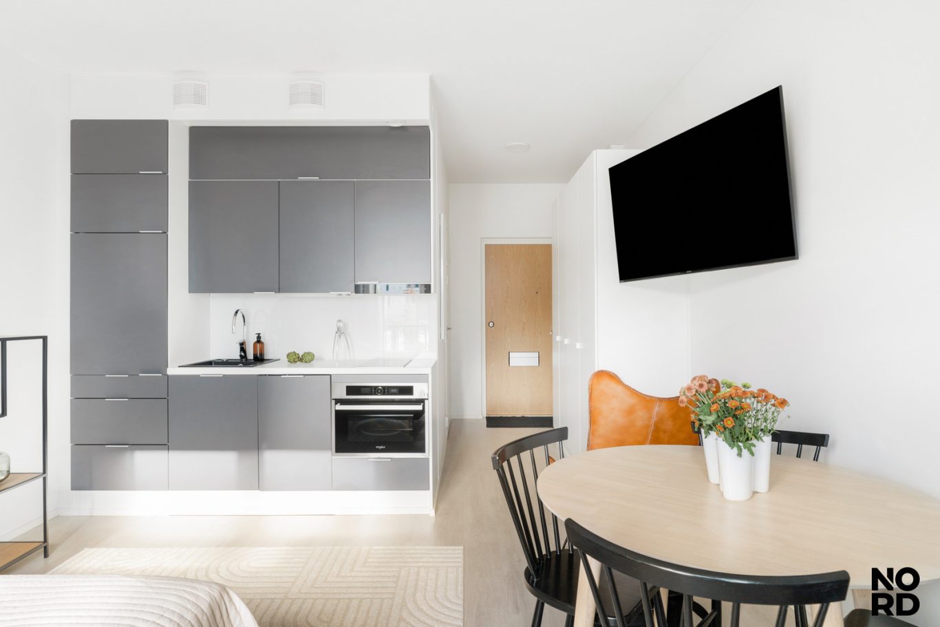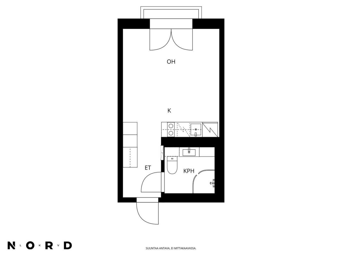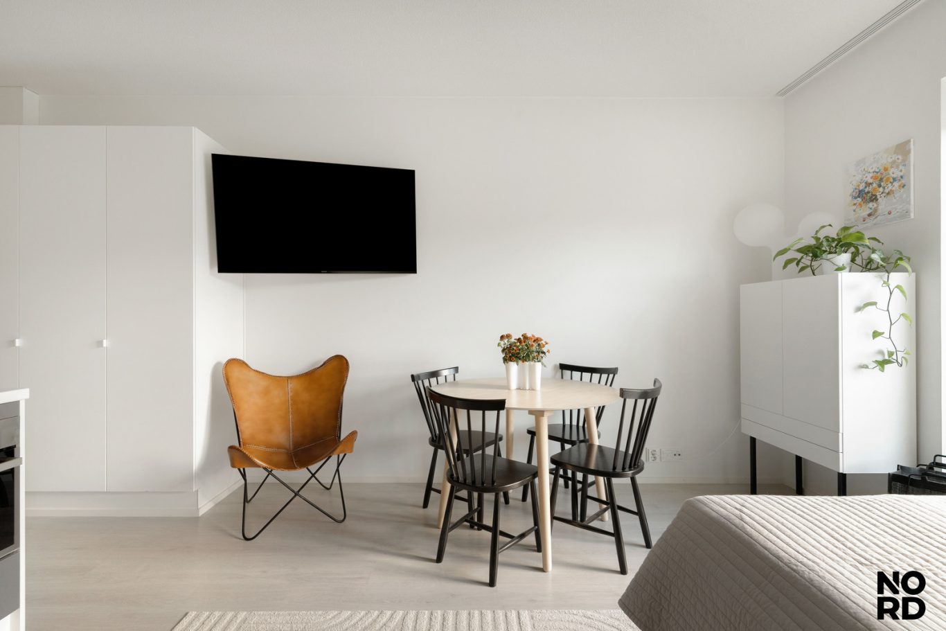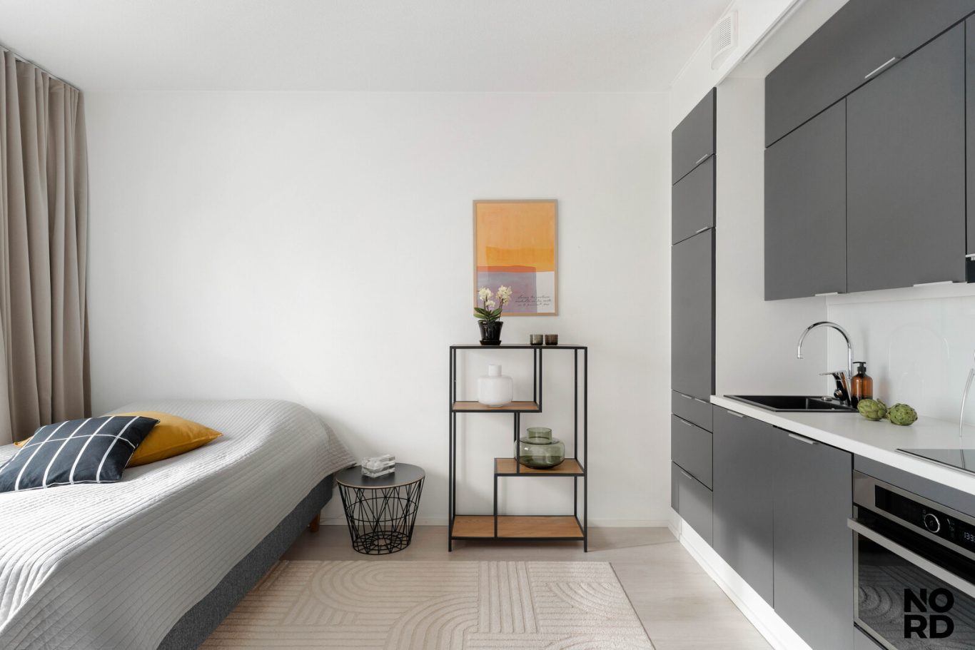 Tämä 26 m² yksiö sijaitsee erinomaisella paikalla; meren läheisyydessä, hyvien kulkuyhteyksien varrella ja omalla tontilla.