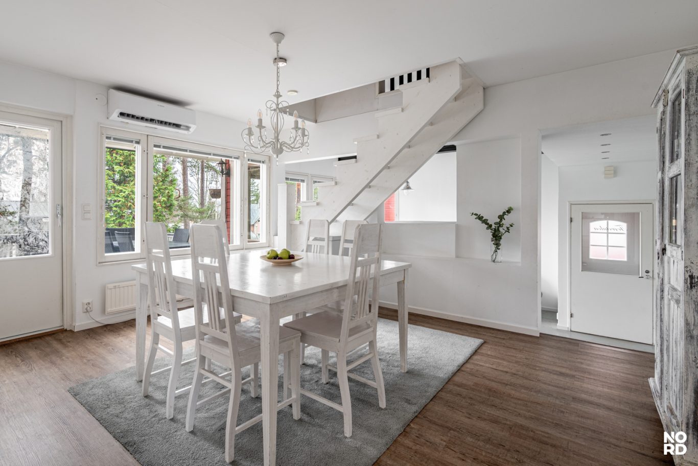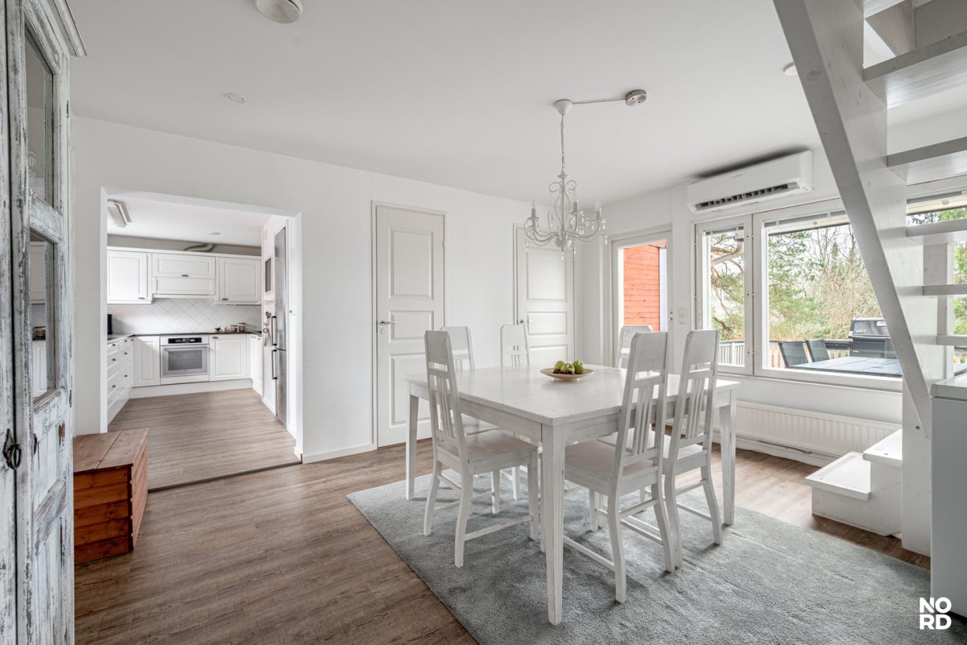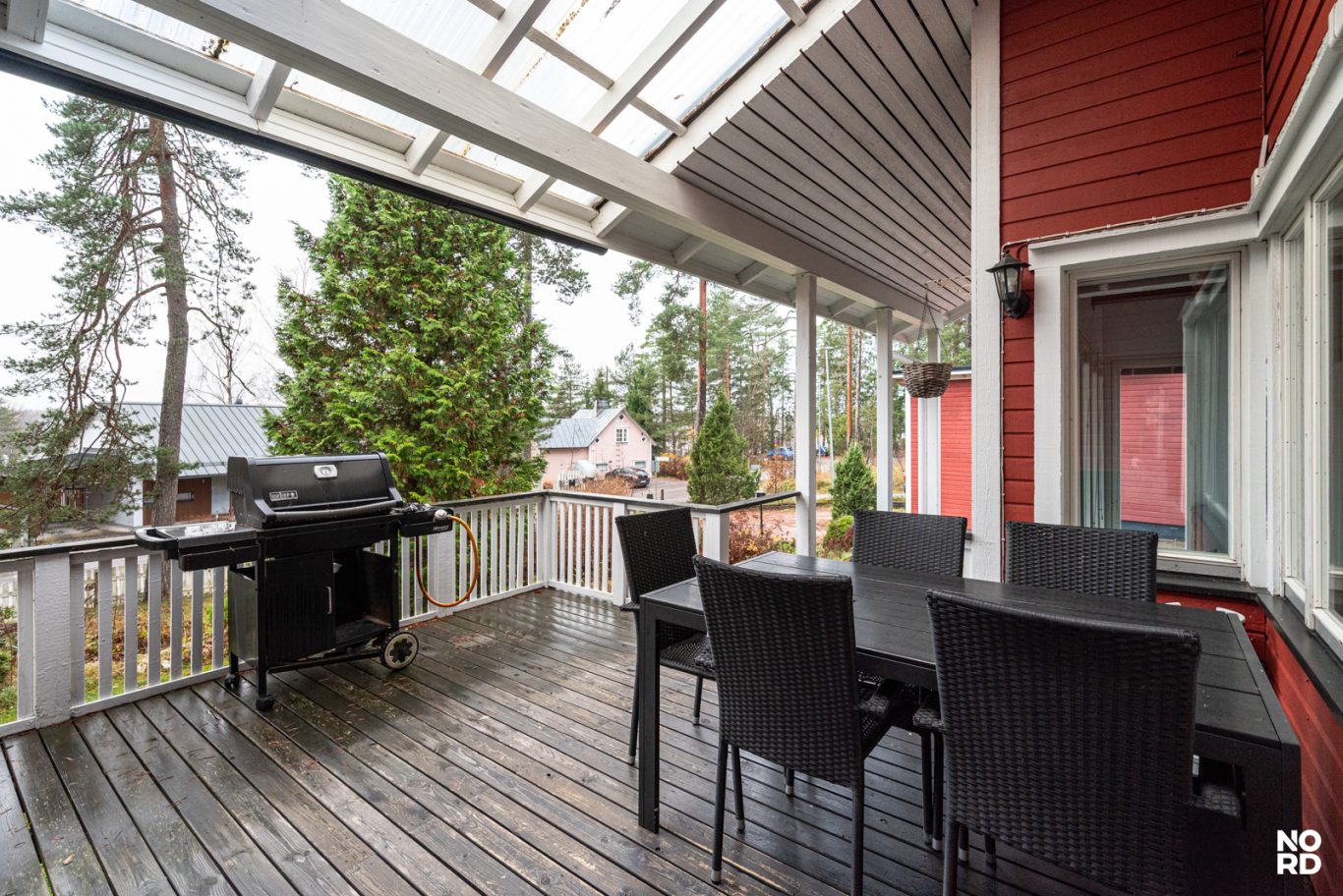 Keittiön yhteydessä oleva erillinen ruokailutila tarjoaa mukavat puitteet yhteisille aterioille. Ruokailutilasta on käynti terassille, joka toimii kesällä erinomaisesti grillaus- ja oleskelualueena.
