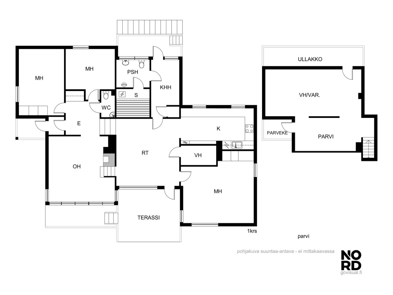 | Huoneistoselitelmä | K+rt+oh+3 x mh,kph+s+wc+khh+parvi+ullakko+at |