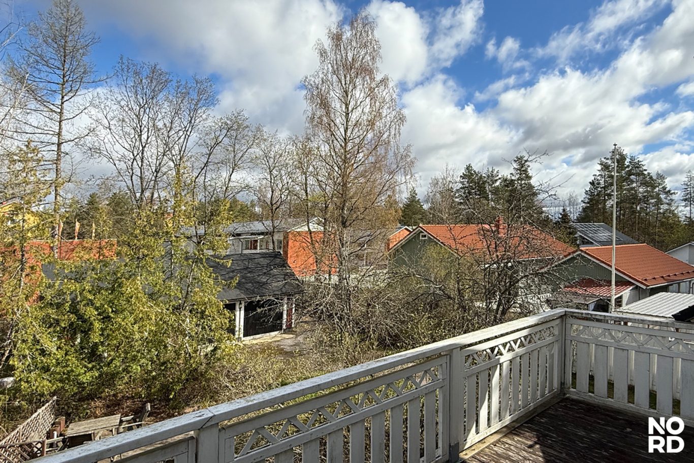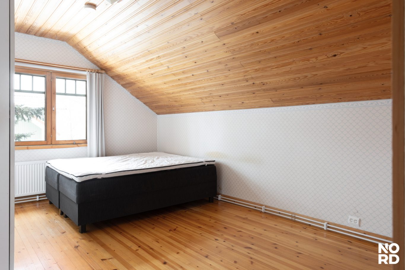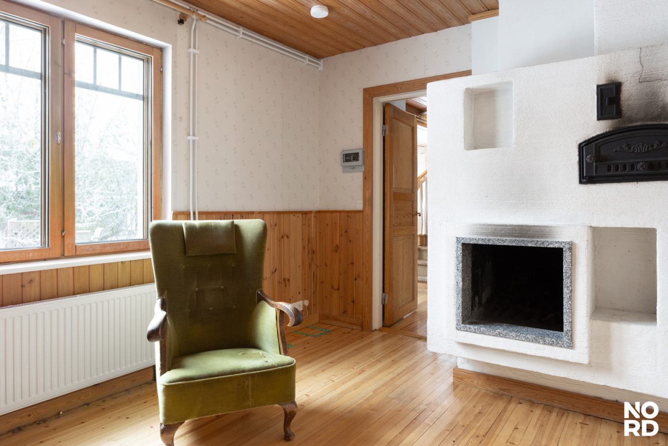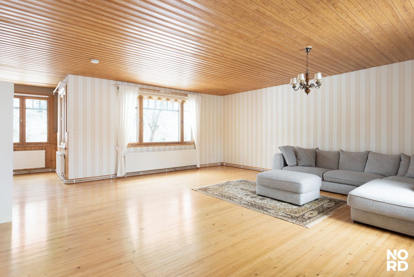 Tilaa tässä talossa riittää. Yläkerrasta löytyy neljä tilavaa makuuhuonetta, ja alakerran olohuone on poikkeuksellisen suuri. Molemmissa kerroksissa on wc:t, ja alakerrasta löytyy sauna sekä kylpyhuone. Sympaattinen pihapiiri kätkee sisäänsä vehreän puutarhan, ja talousrakennuksesta löytyy kahden auton talli sekä reilusti varastotilaa.