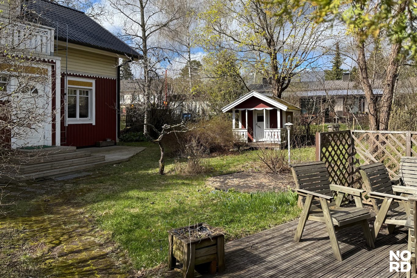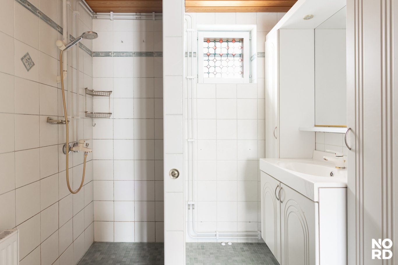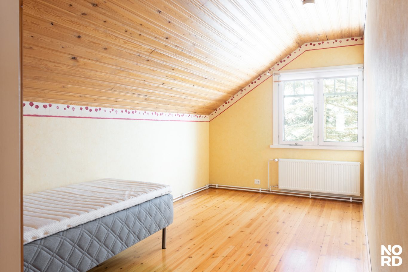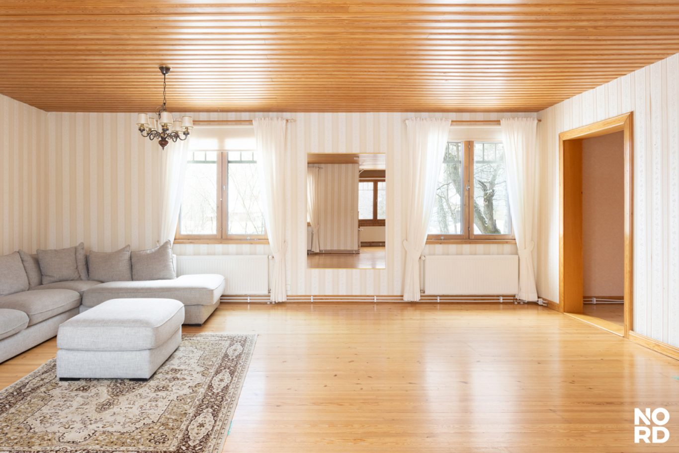 Tilaa tässä talossa riittää. Yläkerrasta löytyy neljä tilavaa makuuhuonetta, ja alakerran olohuone on poikkeuksellisen suuri. Molemmissa kerroksissa on wc:t, ja alakerrasta löytyy sauna sekä kylpyhuone. Sympaattinen pihapiiri kätkee sisäänsä vehreän puutarhan, ja talousrakennuksesta löytyy kahden auton talli sekä reilusti varastotilaa.