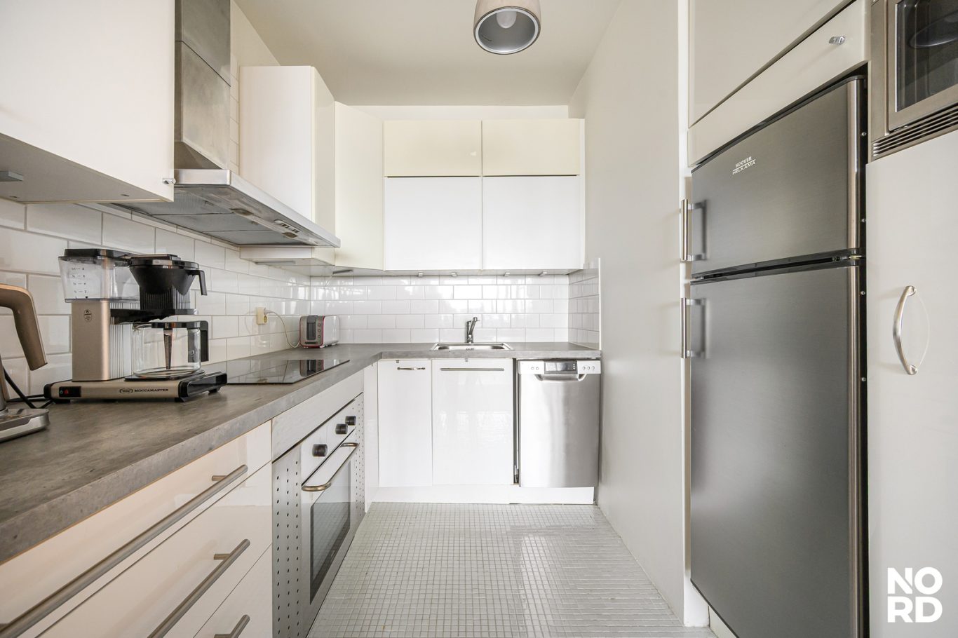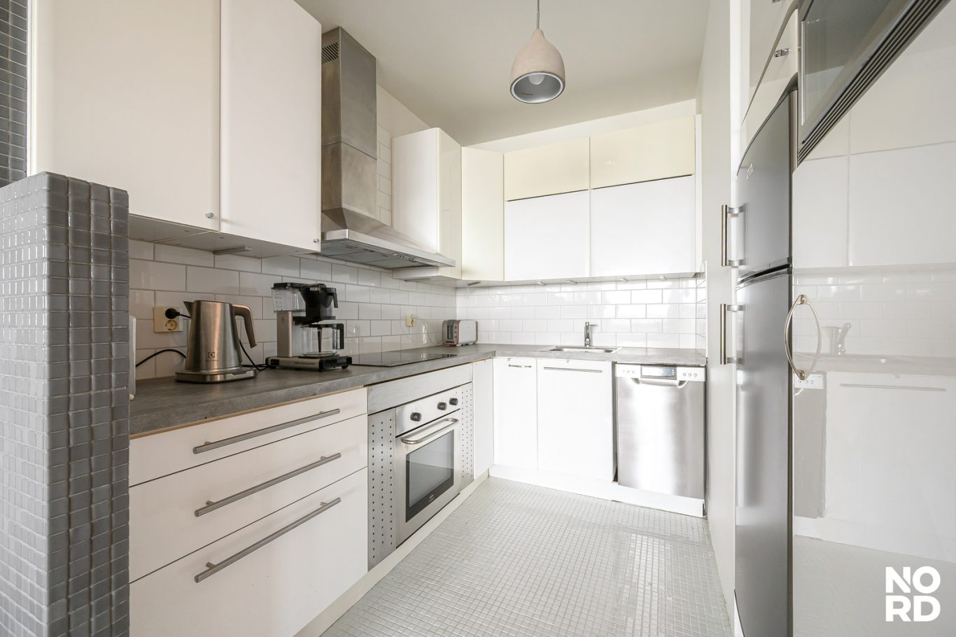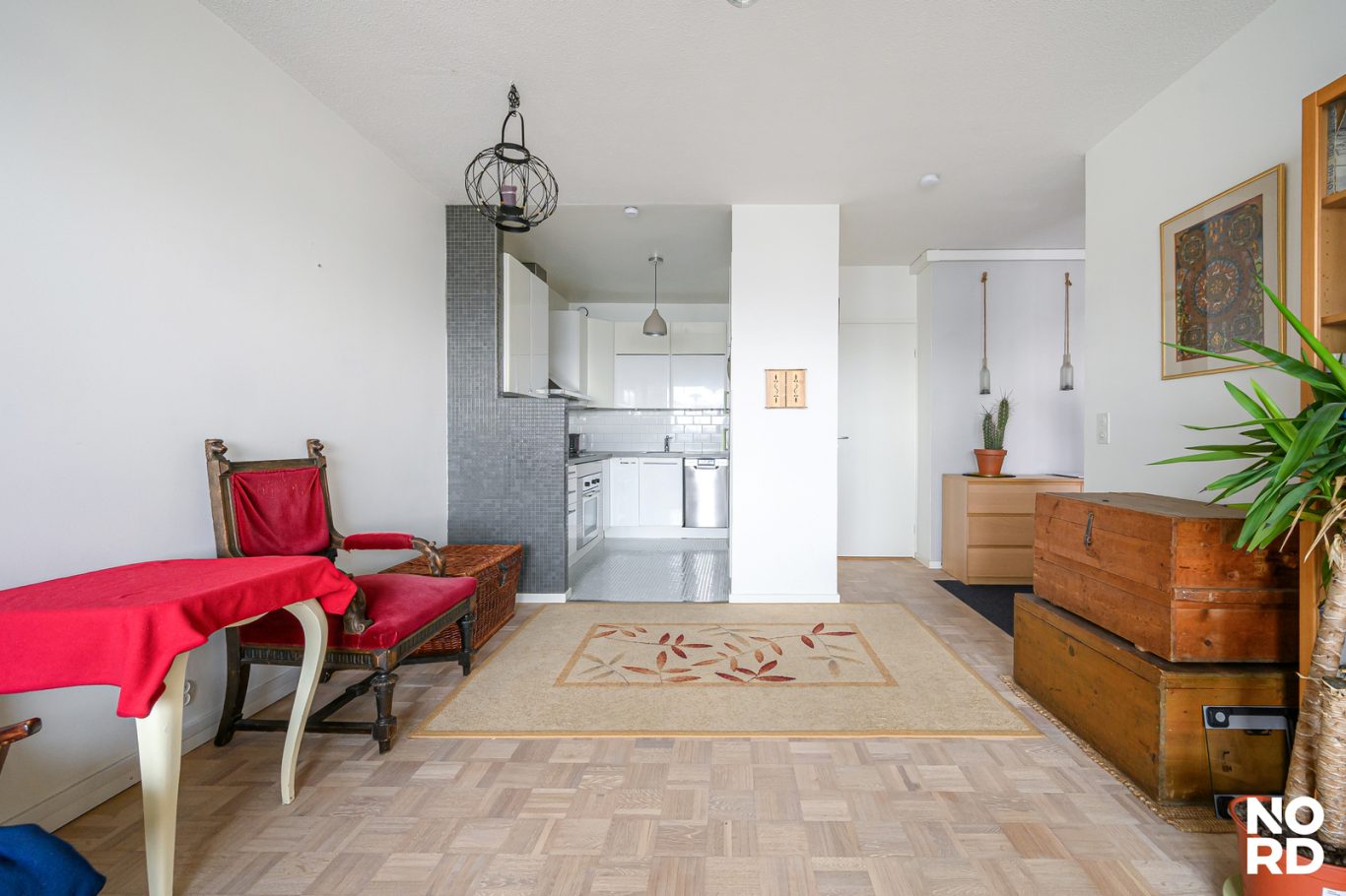 Keittiötila avautuu olohuoneeseen josta käynti lasitetulle parvekkeelle.