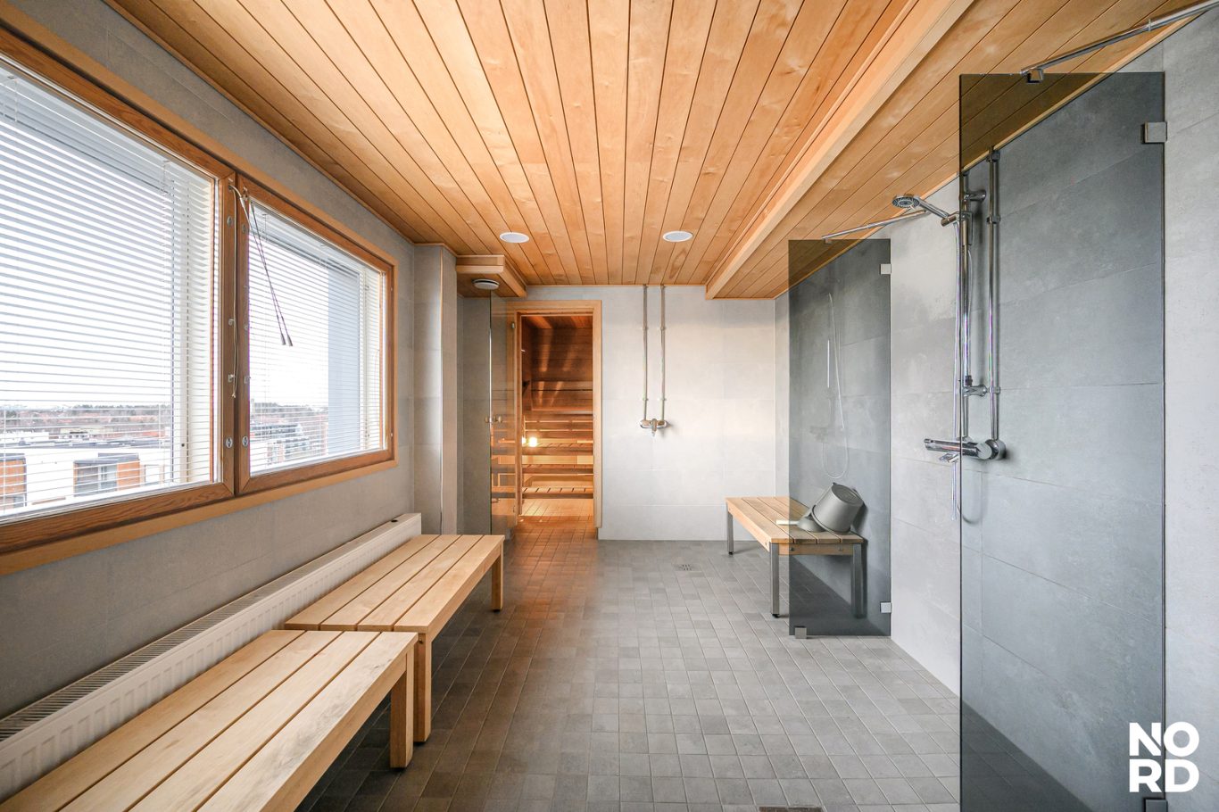 Tästä F-rapun yläkerrasta löytyy varaussauna jota voi vuokrata 3,00 e/h, sekä etätyötila jonka vuokra 1,00 e/2h, lisäksi alakerrassa kerho-/juhlatila, vuokra 10,00 e/2h.