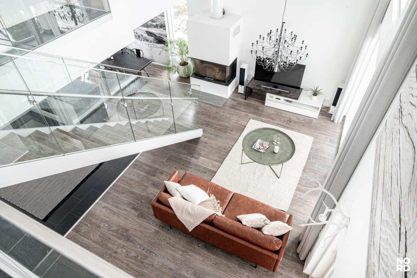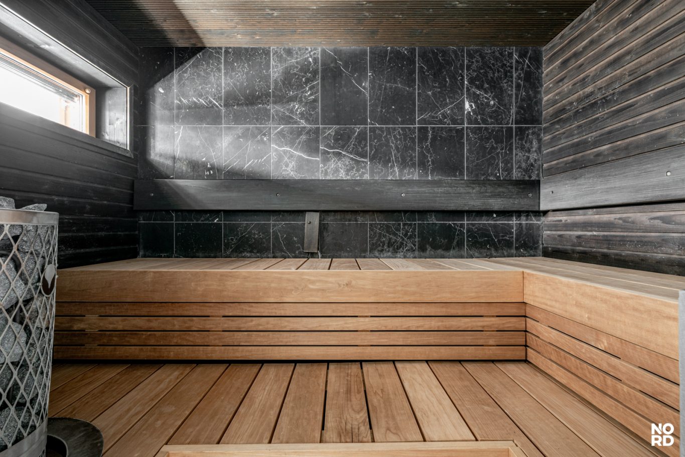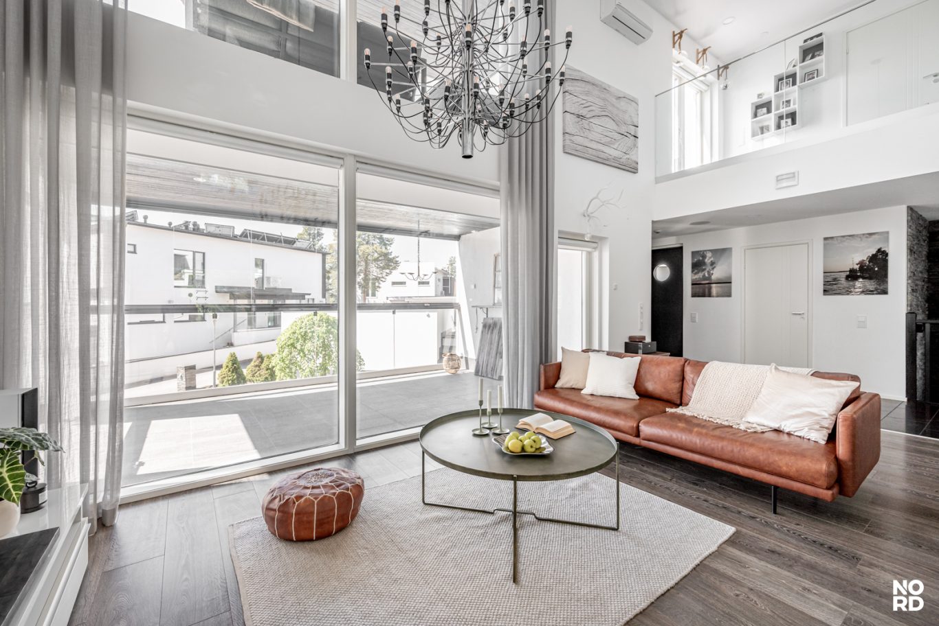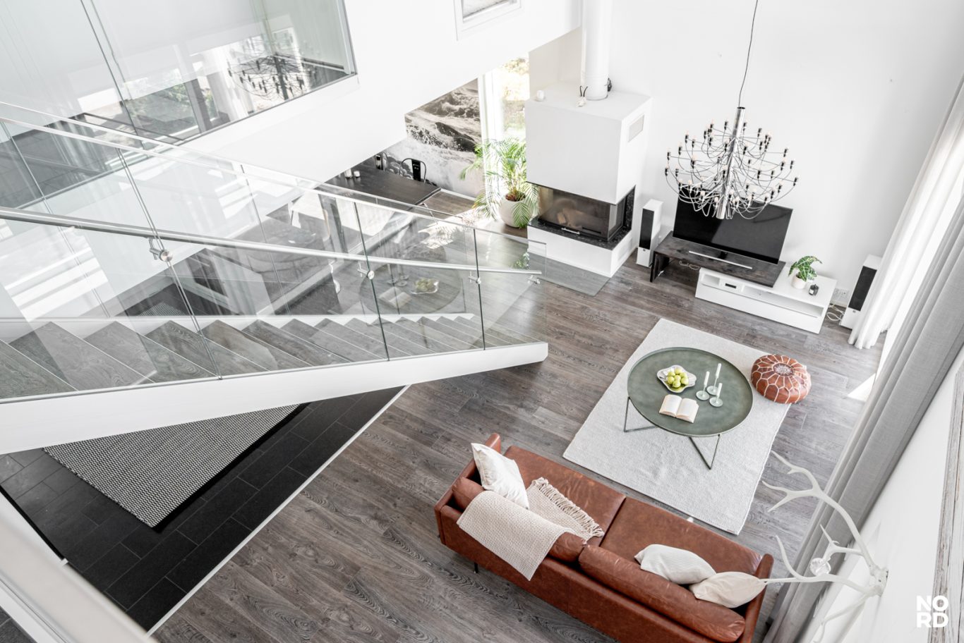 Tässä kerroksessa nautit laajojen ikkunapintojen tuomasta runsaasta valosta ja korkeasta huonekorkeudesta. Vaalea avokeittiö, ruokailutila ja olohuone, josta käynti tilavalle lasitetulle parvekkeelle. Olohuoneessa tunnelmaa luomassa takka. Tässä kerroksessa myös sauna, pesuhuone ja erillinen wc. Saunatilan vieressä vielä yksi huone, josta käynti isolle terassialueelle, joka kiertää toiselle puolelle taloa. Terassilla palju, leikkimökki ja runsaasti tilaa ruokaryhmälle, grillaukseen kuin aurinkotuoleille.