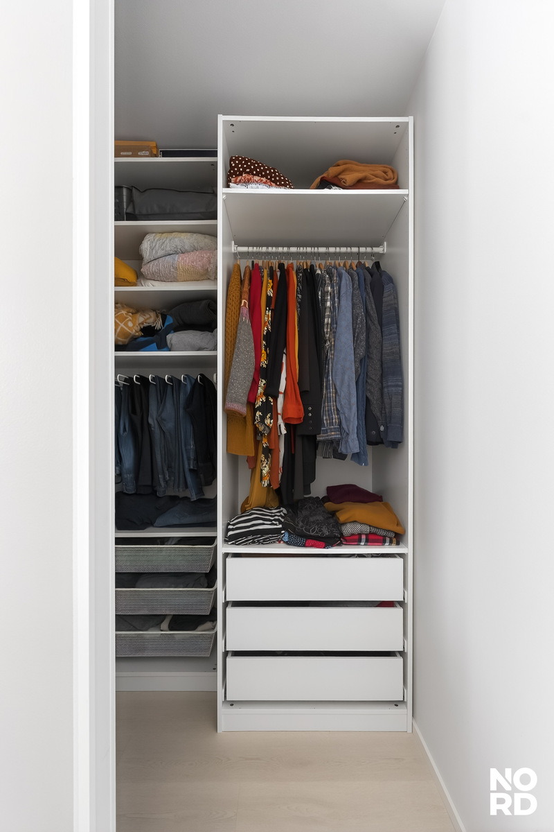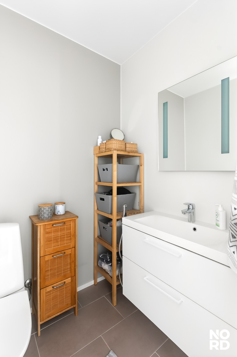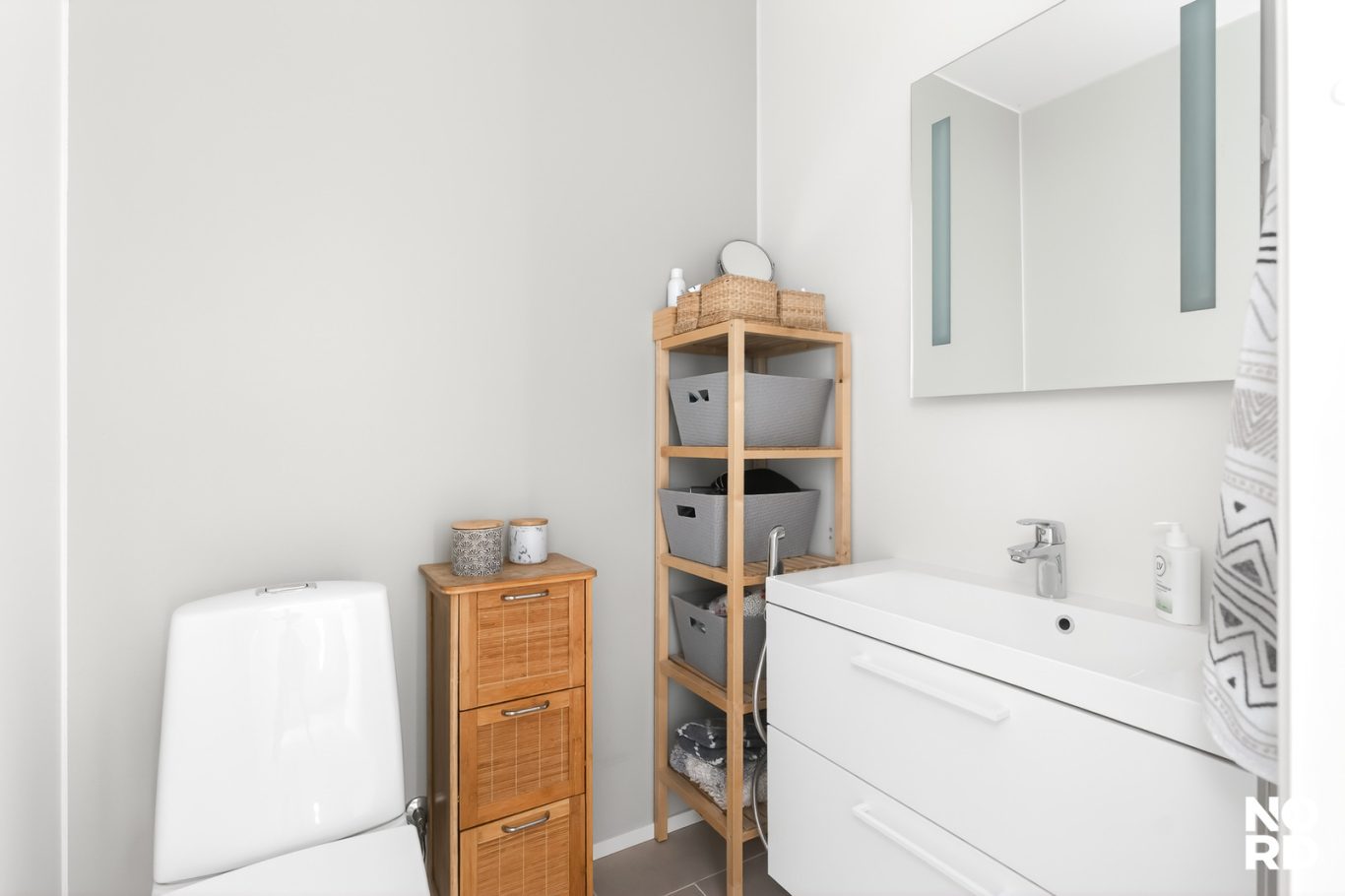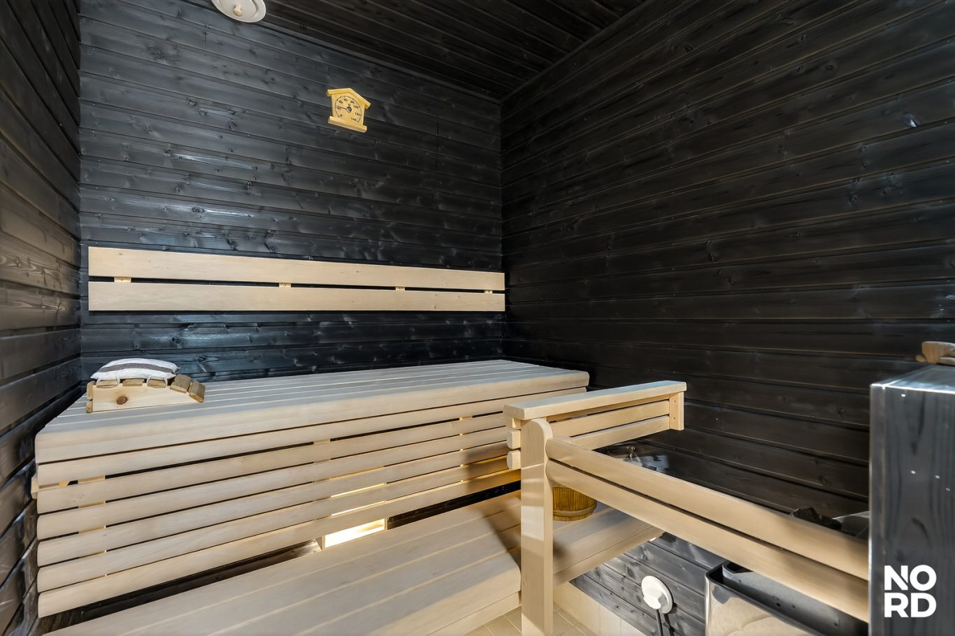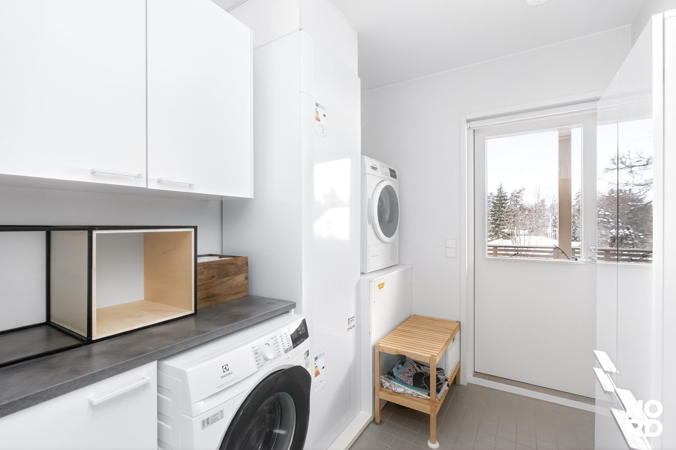 Helppo 1-tasoratkaisu, 2 makuuhuonetta, toisessa ns walking closet vaatehuone, moderni avoin keittiö olohuoneratkaisu, olohuoneessa takkavaraus, erillinen wc löytyy ja tietysti oma sauna, kylpyhuone ja kodinhoitotilat.